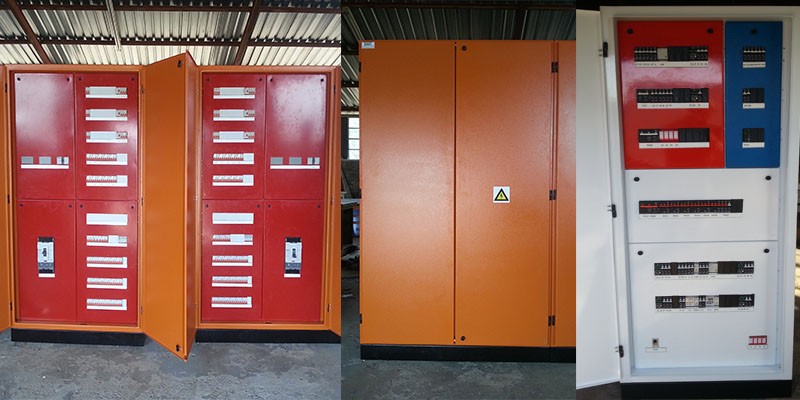 Our workshop is fully equipped enabling us to manufacture the steel enclosures on site. The next step in the manufacturing process is the assembly of the powder coated parts. Once that is complete the final steps are the fitting and wiring of the electrical switchgear and busbars if necessary.